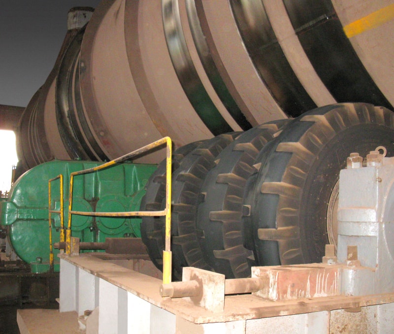 徐州東亞鋼鐵有限公司混料機(jī)上使用的16.00-25海綿實芯輪胎
